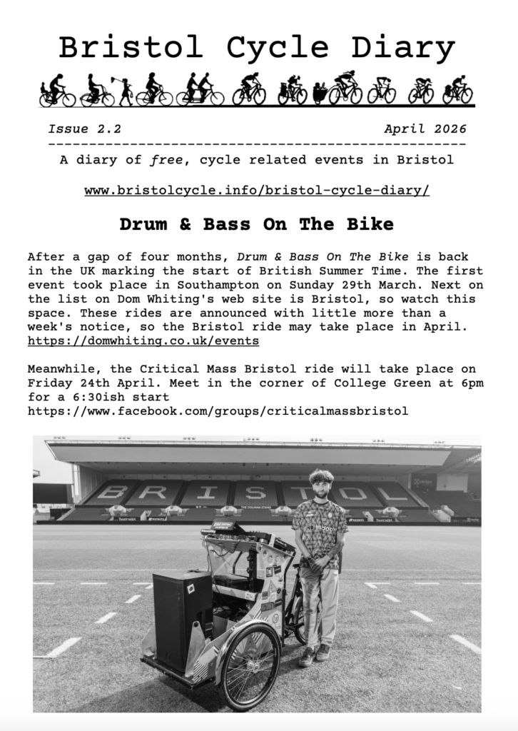Issue 1 of the Bristol Cycle Diary is now available to download and print.